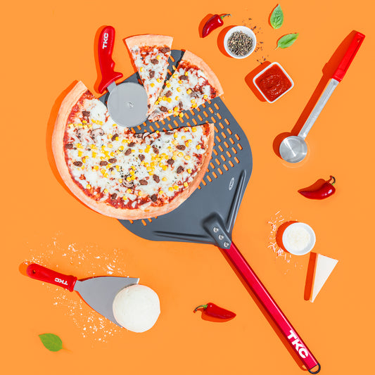 Transform your pizza experience with the TKC Pizza Oven Turning Peel. This thin metal spatula ensures easy transfer from oven to plate, making it an essential tool for home bakers and cooking enthusiasts. Compatible with renowned pizza ovens like Ooni Koda, Fyra, Karu, Gozney Dome, and more.